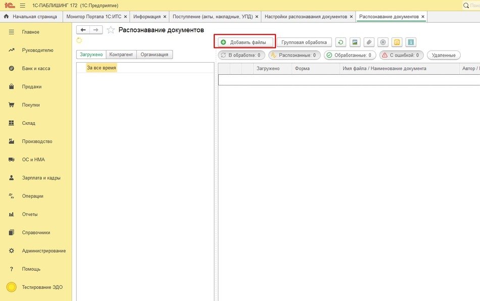 В открывшейся форме распознавания документов кликнуть по кнопке Добавить файлы, рис. 5.