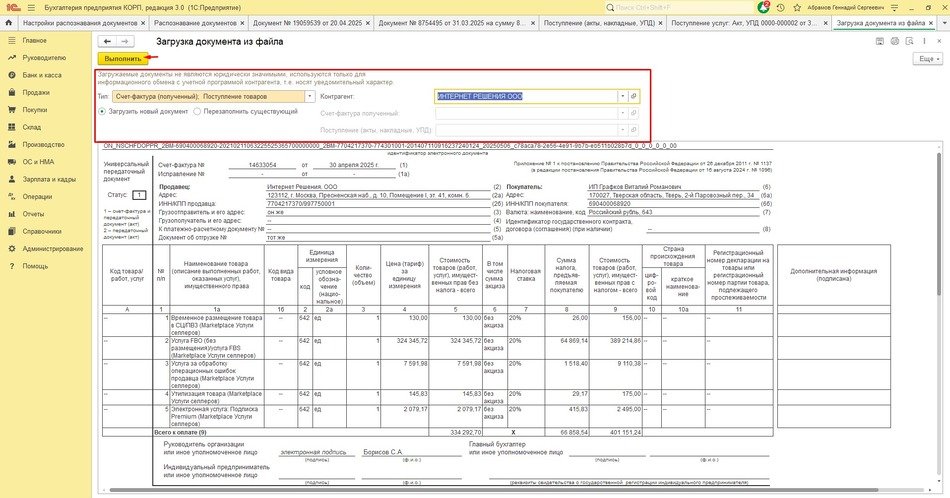В зависимости от условий использования ЭДО и маркетплейсов, через которые идет торговля, в «1С:Бухгалтерии 8» существует как минимум три механизма автоматизации загрузки данных по услугам маркетплейсов: