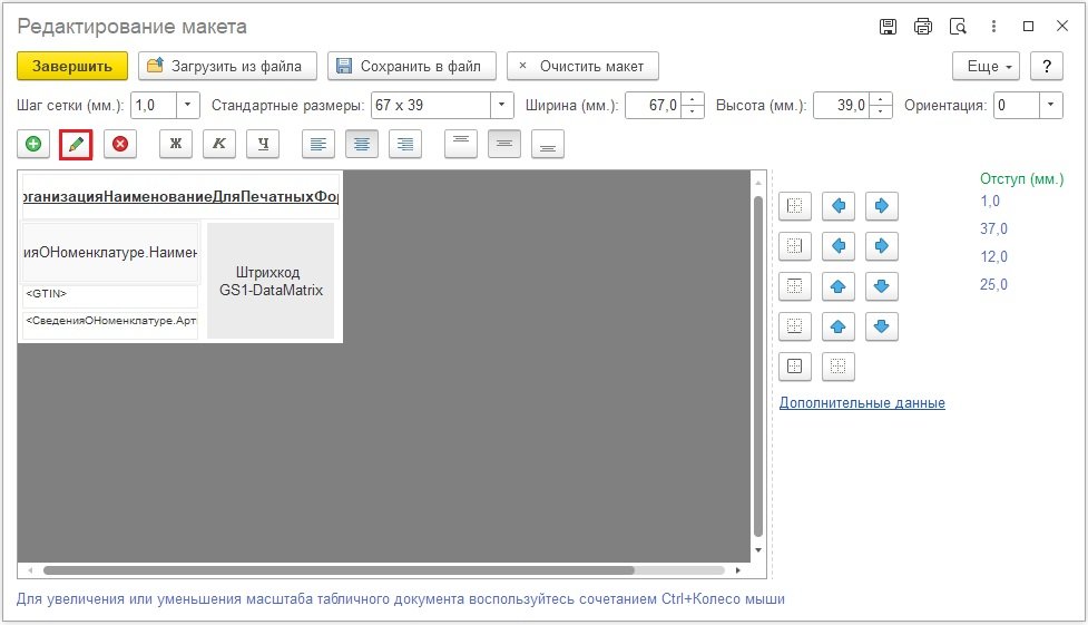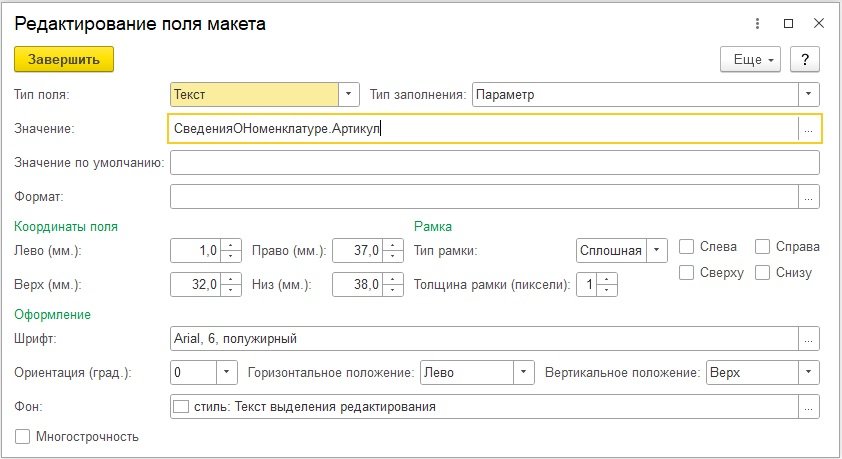 Рис. 4. Изменение поля в макете этикетки
