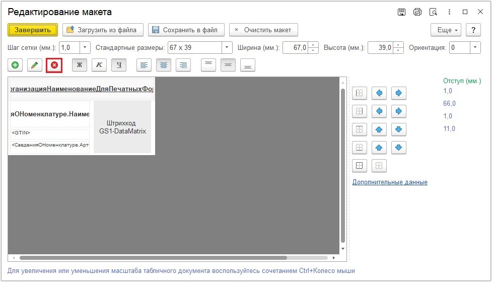 Настройка шаблона этикетки
