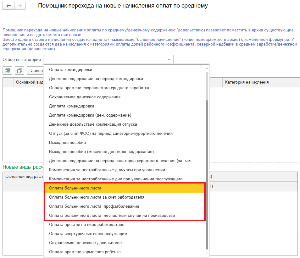 Рис. Помощник перехода на новые начисления оплат по среднему