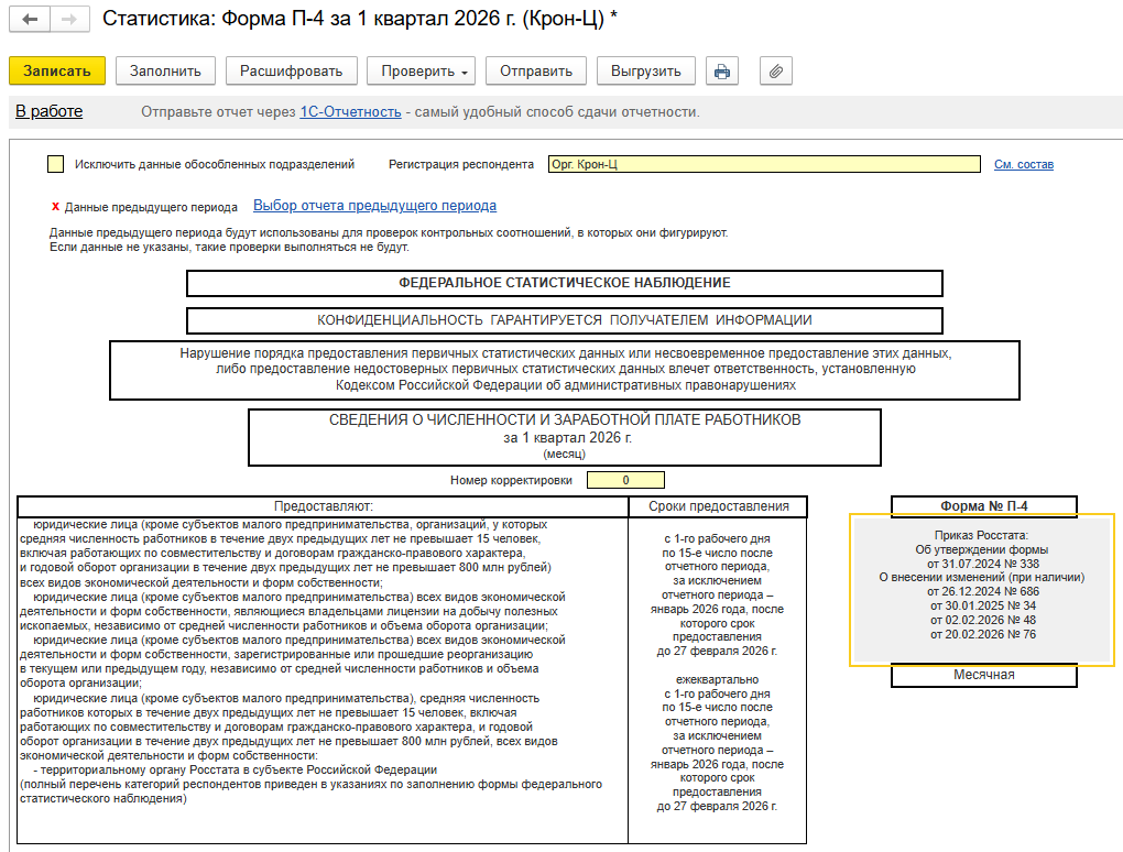 Есть ли в решениях «1С:Предприятие 8» новая статистическая форма П-4?