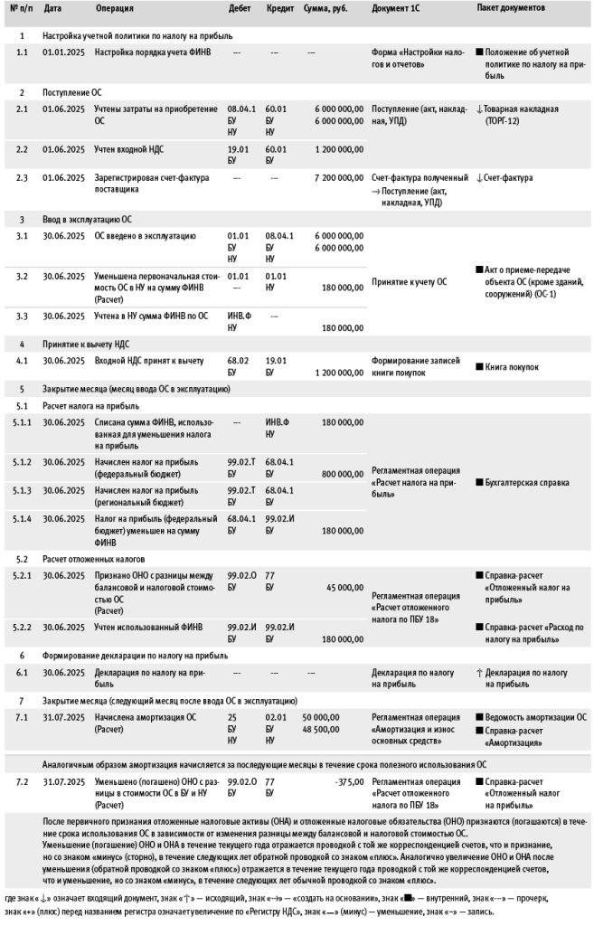 ООО «Альтаир» применяет общую систему налогообложения (ОСНО) и метод начисления, не имеет обособленных подразделений, имеет право на использование ФИНВ. ООО «Альтаир» в июне 2025 года приобрела и ввела в эксплуатацию ОС («АТС» – аппаратура коммуникационная передающая с приемными устройствами) стоимостью 7 200 000,00 руб., в т.ч. НДС 20% – 1 200 000,00 руб. Приобретенное оборудование относится к категории объектов, к которым можно применить ФИНВ.