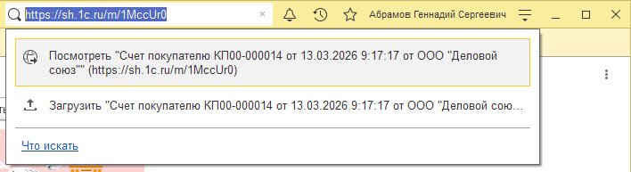 Если ваш партнер тоже работает в 1С, ему даже не нужно ничего скачивать. Получив ссылку, он просто копирует ее и вставляет в поле глобального поиска своей программы 1С (в верхней части экрана). Программа мгновенно найдет документ в облачном сервисе и предложит загрузить его. Все данные – номенклатура, количество и цены – заполнятся автоматически.