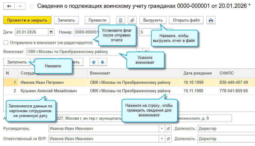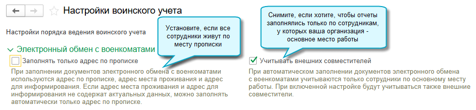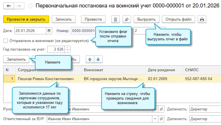 Настройка выгрузки отчетов по воинскому учету
