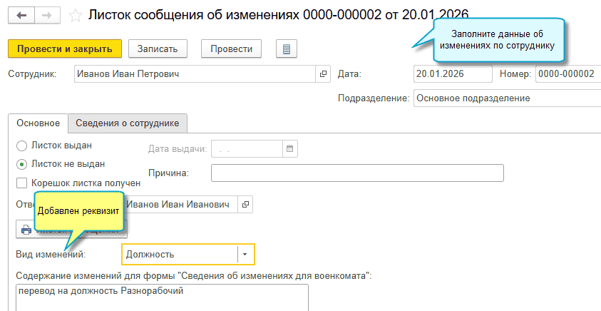Изменения сведений сотрудников для военкомата