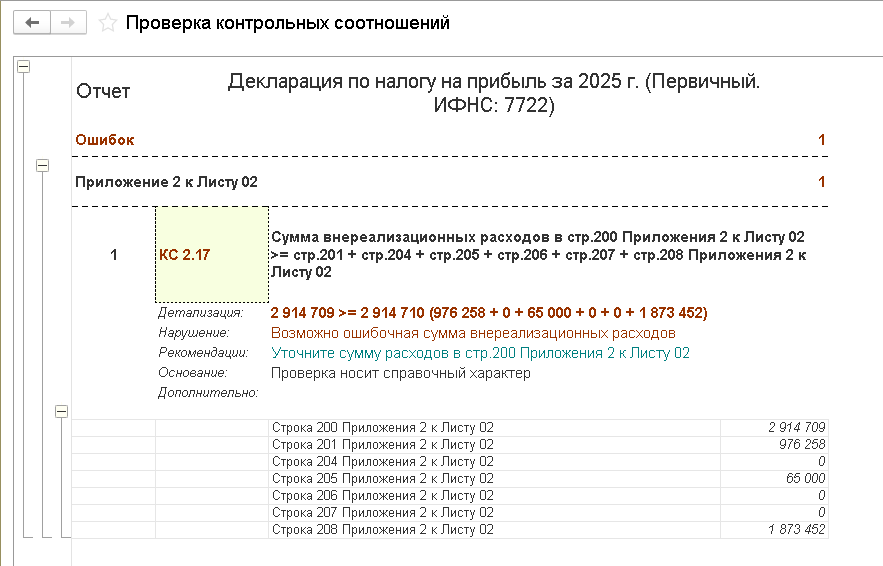 Рис. 4. Результат проверки контрольных соотношений