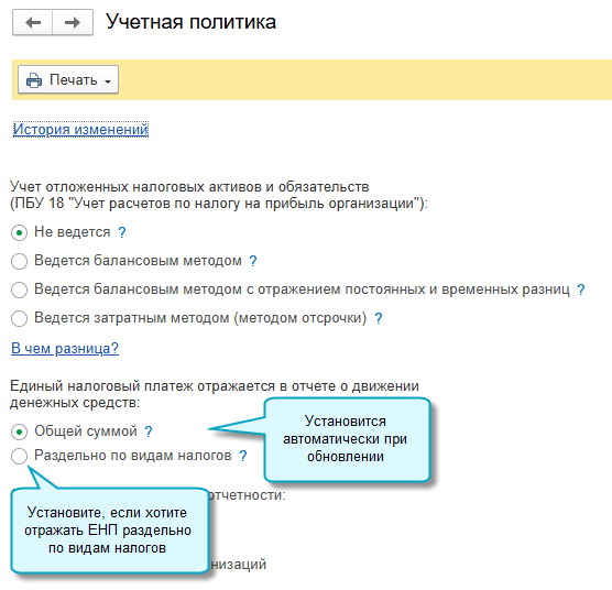 Порядок отражения ЕНП устанавливается в учетной политике: