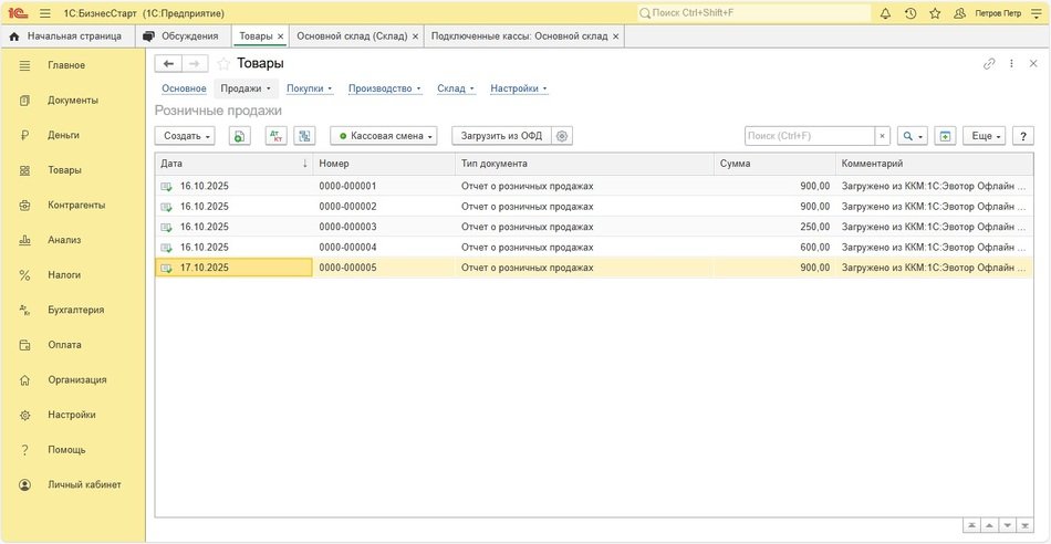 После загрузки данных будут автоматически созданы документы Отчеты о розничных продажах.