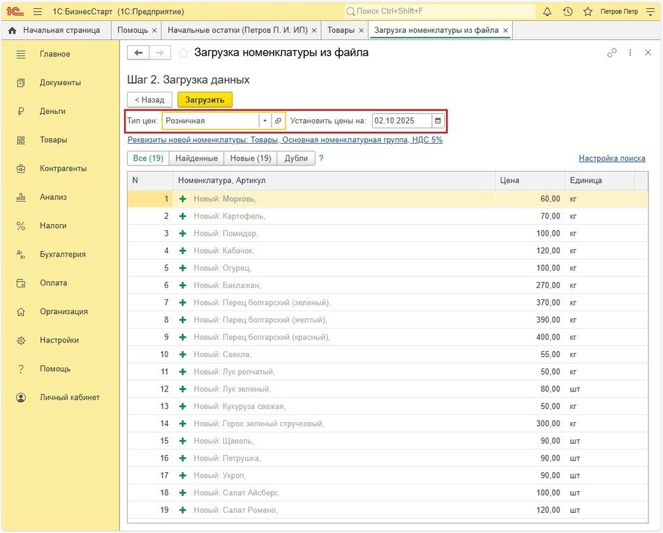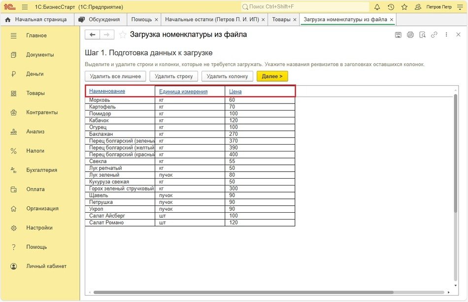 Загрузка номенклатуры в «1С:БизнесСтарт» из файла Excel