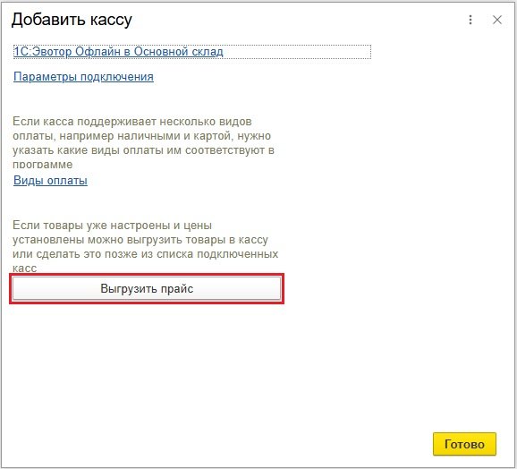 Для выгрузки товаров в кассу нажмите кнопку Выгрузить прайс.