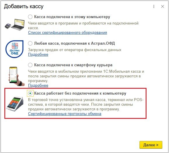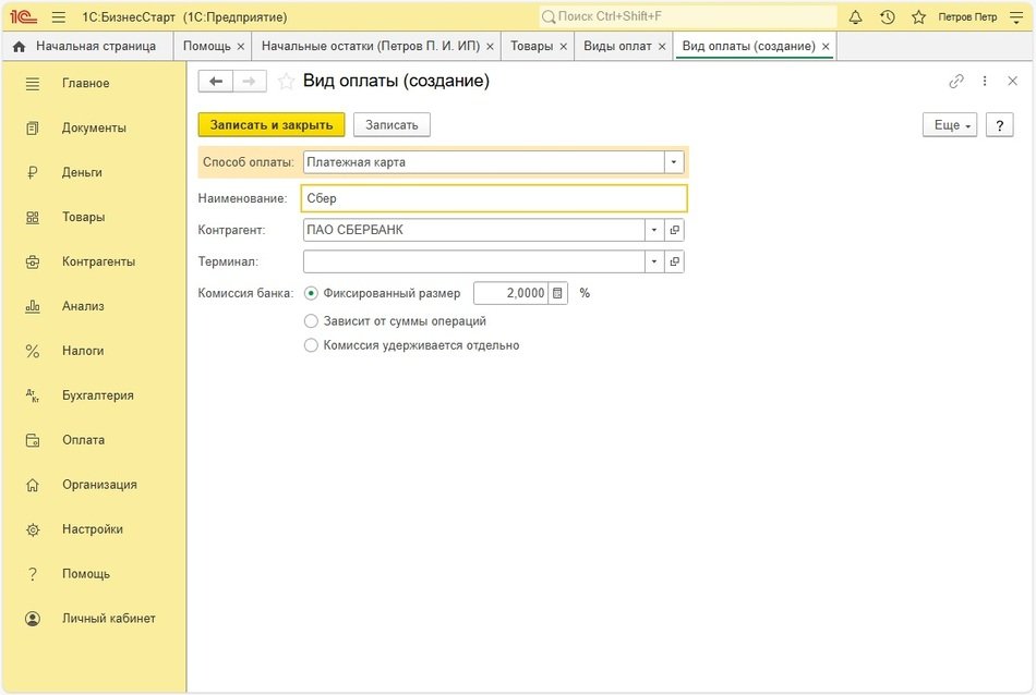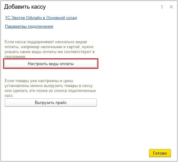 Для работы с безналичной оплатой необходимо настроить виды оплаты.
