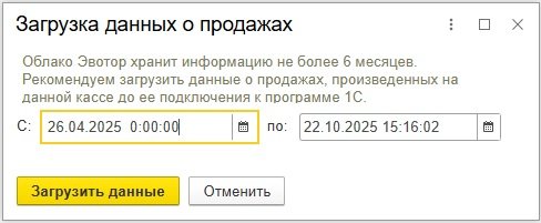 Выберите период, за который нужно загрузить продажи. Нажмите кнопку Загрузить данные.