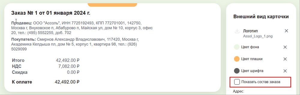 Менеджер отправляет клиенту не готовый счет, а ссылку на него. Клиент может открыть ссылку в смартфоне или на компьютере в любом браузере и увидеть свой заказ: название товаров или услуг, количество, стоимость каждой позиции и итоговую сумму, примененные скидки, а также вложения (например, дизайн-проект ремонта).