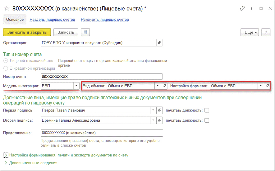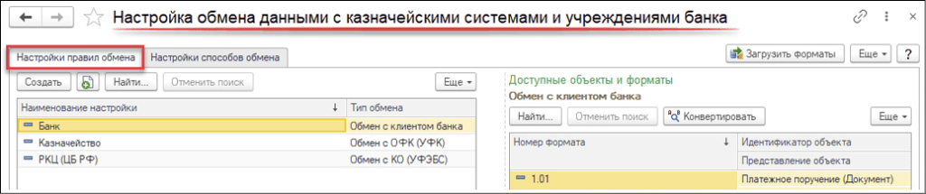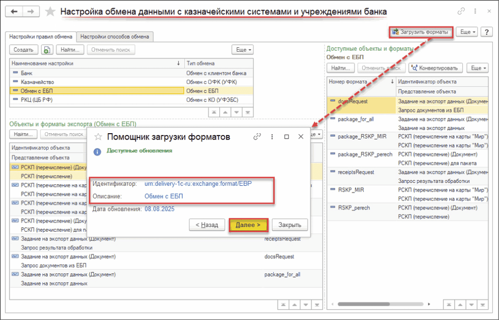 По команде Записать и закрыть новая настройка формата обмена с типом обмена «Обмен с ЕБП» будет сохранена в программе.