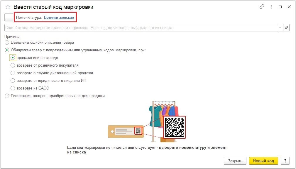 Рис. 2. Окно ввода старого кода маркировки