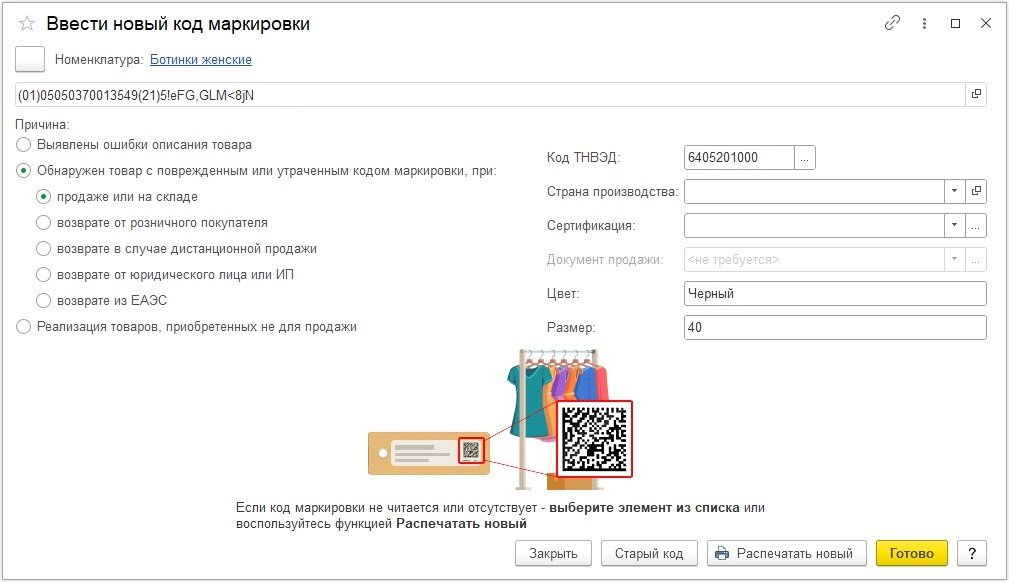 Перемаркировка – это ввод в оборот новых кодов маркировки, если старый код утрачен, поврежден или выявлены ошибки в описании товара.