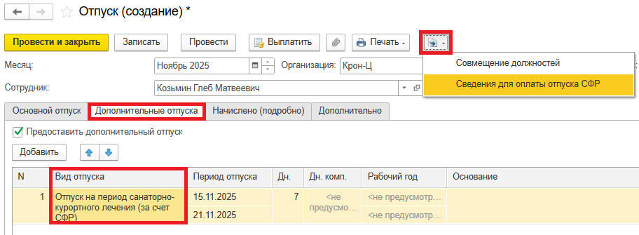 ❗ Дополнительный отпуск на период санаторно-курортного лечения предоставляется сотруднику при наступлении страхового случая (профессиональное заболевание или производственная травма) и оплачивается за счет СФР в размере среднего заработка (постановление Правительства РФ от 15.05.2006 №286).
