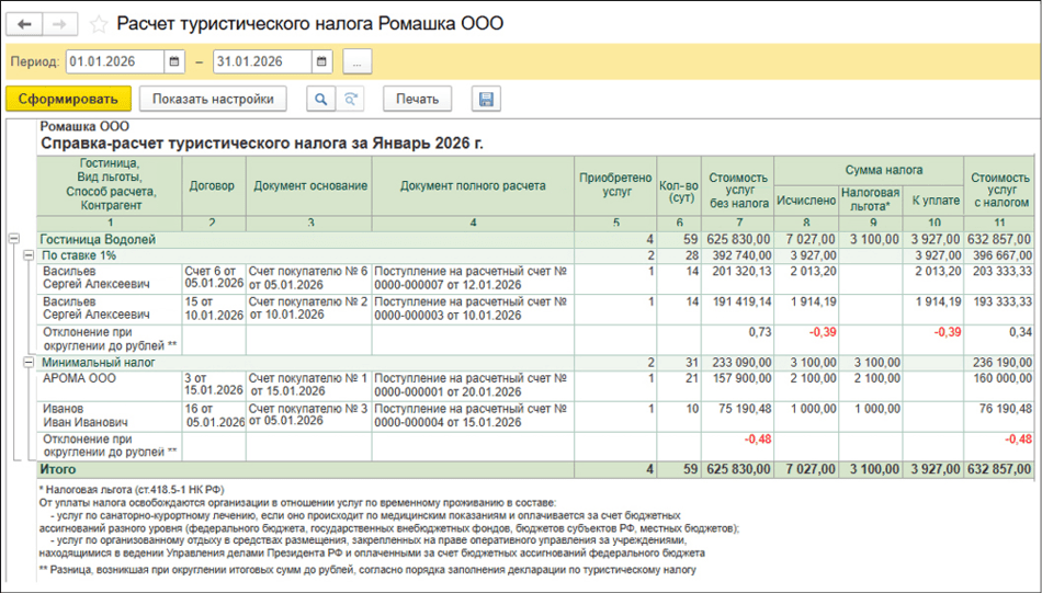 Рис. 3. Справка-расчет туристического налога за месяц с учетом округления