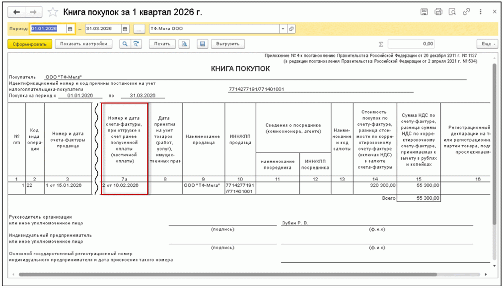 Рис. 8. Книга покупок за I квартал 2026 года