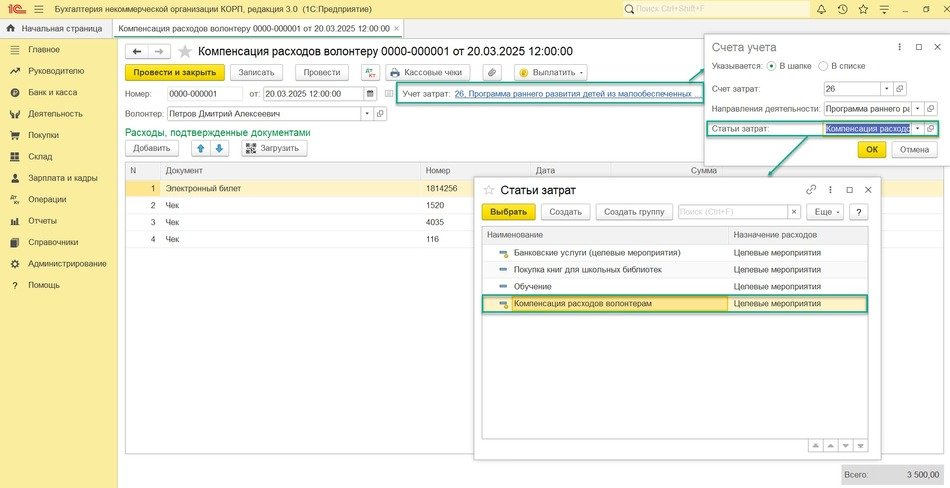 Отражение компенсации расходов волонтерам в «1С:Бухгалтерии НКО 8» (ред. 3.0)