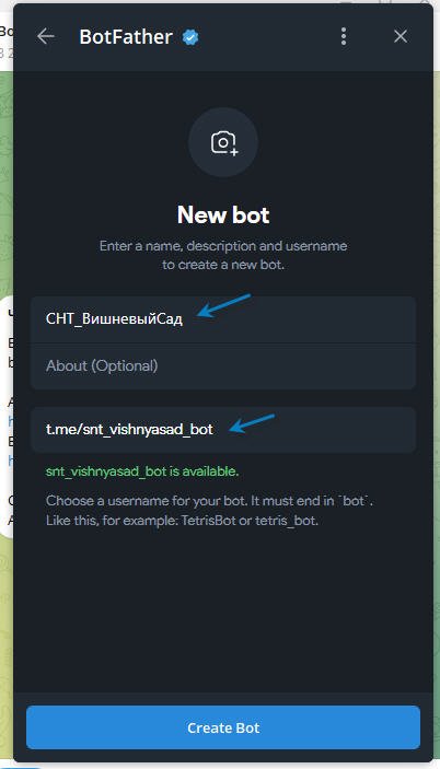 Придумайте название для вашего чата и имя для вашего бота. В имени бота в конце должен быть текст «bot».