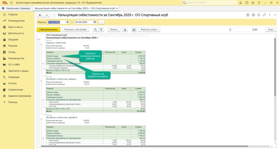 Спортивная общественная организация занимается развитием детского и юношеского спорта, пропагандой здорового образа жизни и проведением спортивных мероприятий. В рамках проведения ежегодного спортивного фестиваля организация изготовила и реализовала партию разноразмерных футболок и сувениров с символикой мероприятия. На производстве занят работник организации – мастер производства с окладом 35 000 руб. Дополнительно сторонней организации были оплачены услуги по разработке макета логотипа в сумме 15 000 руб. Вырученные средства частично пойдут на оплату труда работников производства.