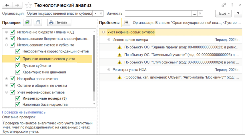 - Помощник закрытия периода содержит ряд проверок (контролей), выявляющих проблемные разделы учета и позволяющих подготовиться к закрытию периода.