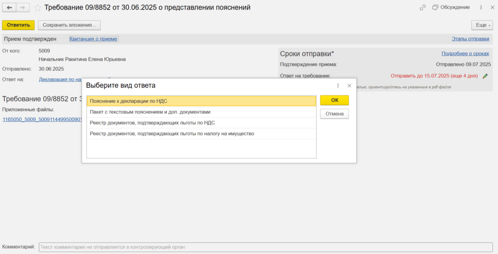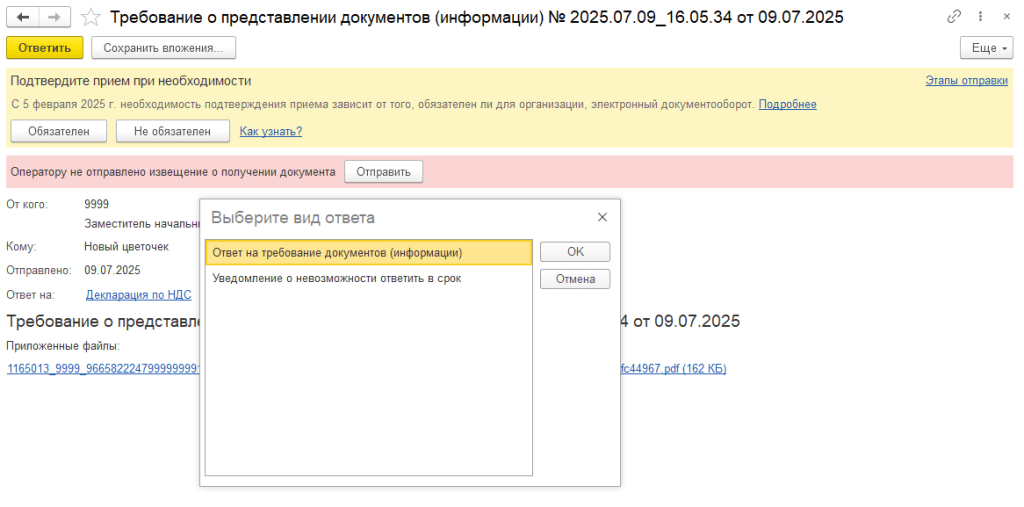 В ответ на поступающие требования и запросы налогоплательщик может при необходимости подтвердить их получение и в указанные в требовании (запросе) сроки направить в ФНС или СФР нужные документы.