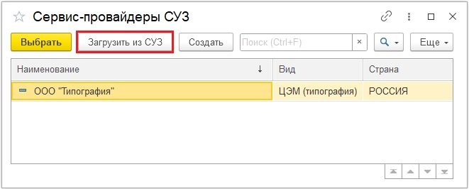 Сервис-провайдеров можно загрузить из СУЗ. Для этого откройте справочник сервис-провайдеров и нажмите кнопку Загрузить из СУЗ.
