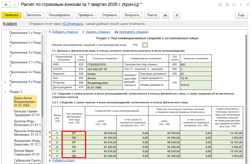 Раздел 3 «Персонифицированные сведения о застрахованных лицах»;