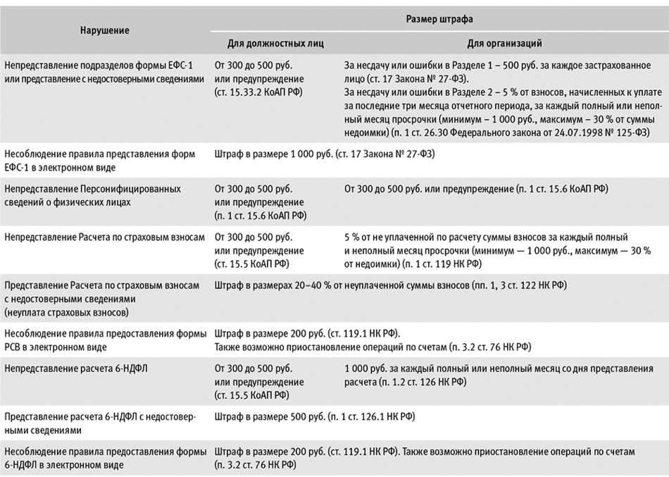 В соответствии с законодательством РФ несоблюдение установленного порядка представления «зарплатных» отчетов влечет применение мер ответственности (в частности, см. таблицу).