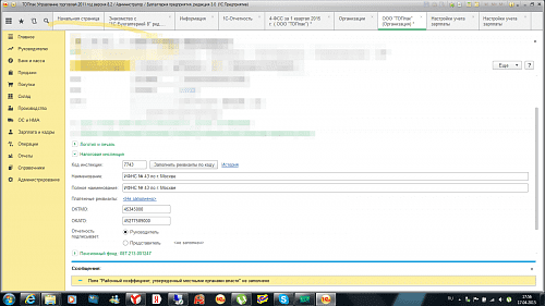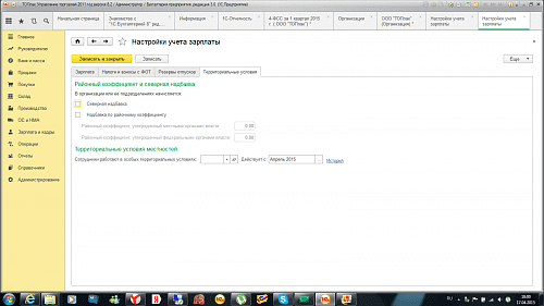 Программа не дает делать отчет ФСС , пишет ошибку "Поле "Районный коэффициент, утвержденный местными органами власти" не заполнено". Наша фирма в Москве, никогда не указывали коэффициент. Подскажите пожалуйста.