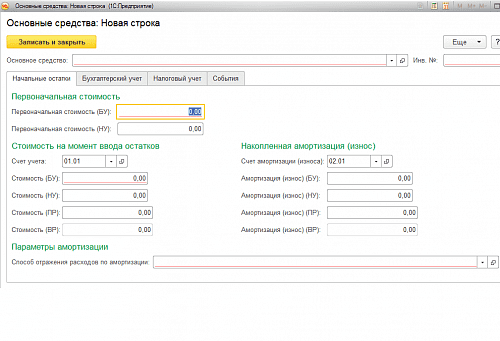 Ввод остаткам по ОС