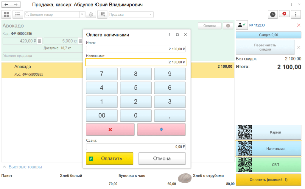 Дополнительно на каждой кнопке расположен QR-код для считывания, с том числе для СБП. Удобно, если кассир в основном пользуется сканером.