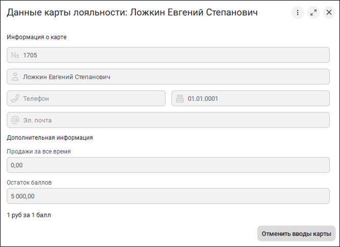 Улучшили поиск карты по владельцу. Ранее сначала заполнялся список карт, а затем данные по этим картам. Теперь поиск карты по владельцу и заполнение данных карты объединено в один процесс. При выборе контрагента добавлена возможность отказаться от ввода карты.