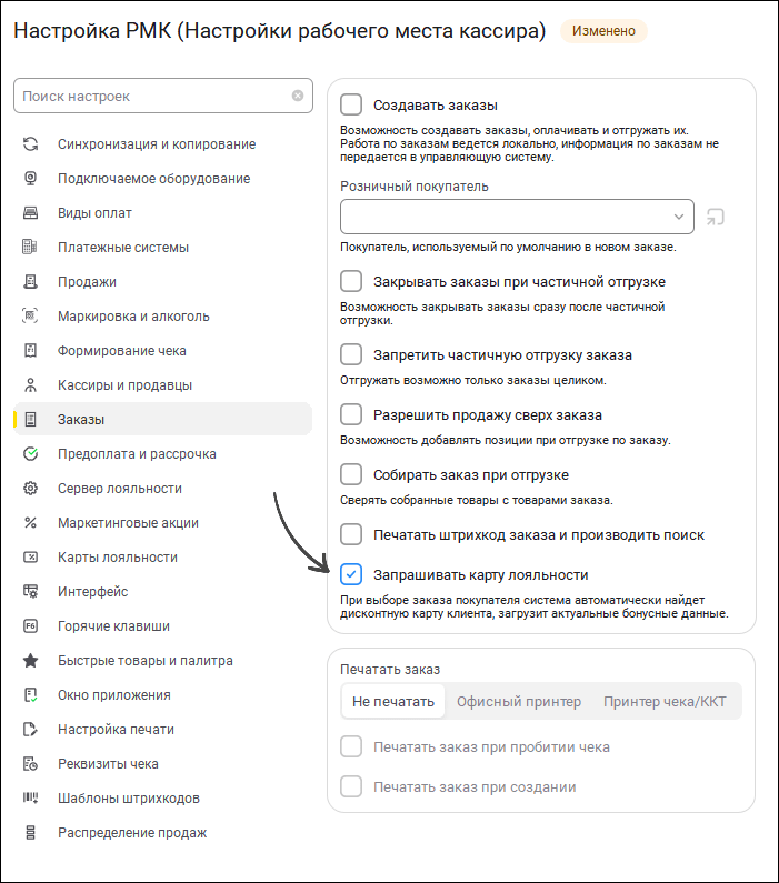 При выключенной опции карта лояльности будет заполнена из заказа. При необходимости можно заполнить данные карты в форме поиска. Если опция включена и в заказе покупателя не указана карта лояльности, то она будет заполнена по данным владельца. При выборе заказа покупателя, если карт несколько, откроется форма поиска карты лояльности для подтверждения. Если карта уже заполнена или она одна, то данные заполнятся автоматически. При необходимости можно удалить карту.