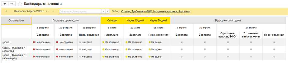 Рис. Календарь отчетности в программе «1С:Зарплата и управление персоналом 8» ред. 3