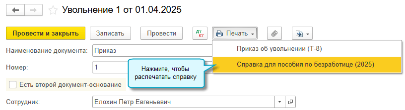 В программе «1С:Бухгалтерия 8» начиная с версии 3.0.172 добавлена печатная форма справки о среднем заработке, исчисленном работодателем для назначения пособия по безработице, утвержденная приказом Минтруда России от 27.11.2024 №637н. Форма применяется с 11.02.2025.