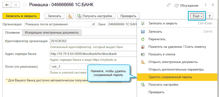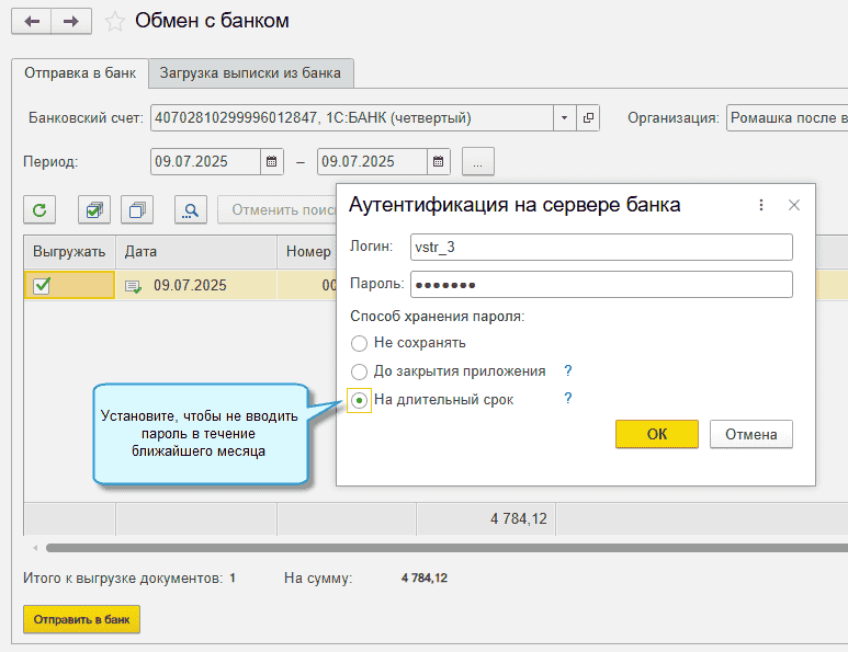 В программе «1С:Бухгалтерия 8» начиная с версии 3.0.179 добавлена возможность не вводить пароль при обмене с банком через 1С:ДиректБанк в течение месяца. Она доступна для обмена с банками (кроме Сбербанка), у которых двойная аутентификация – по паролю и SMS.