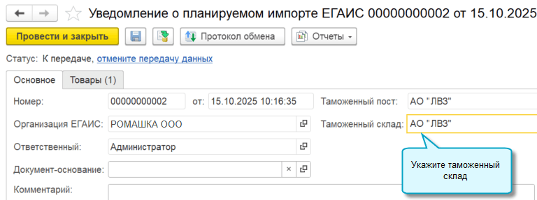 Добавлено новое поле Таможенный склад в документы Уведомление о планируемом импорте ЕГАИС и Отчет об импорте ЕГАИС. Сейчас это поле необязательное для заполнения.