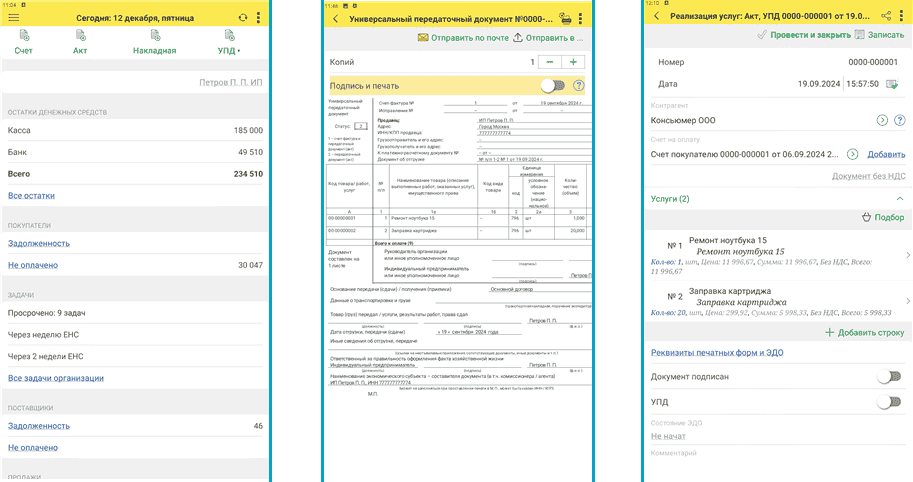 Используемая в приложении технология мобильного клиента автоматически изменяет формы программы для экранов мобильных устройств. При этом самые востребованные формы дополнительно адаптированы для удобной и эффективной работы на мобильном устройстве.