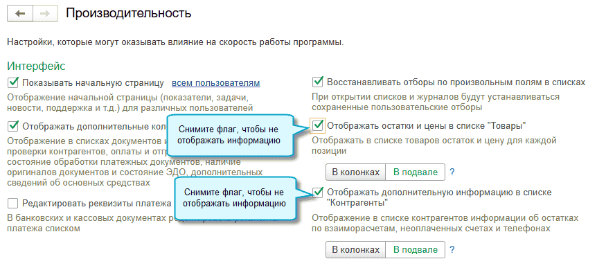 Списки будут быстрее формироваться без остатков. Потребуется изменить настройки производительности.
