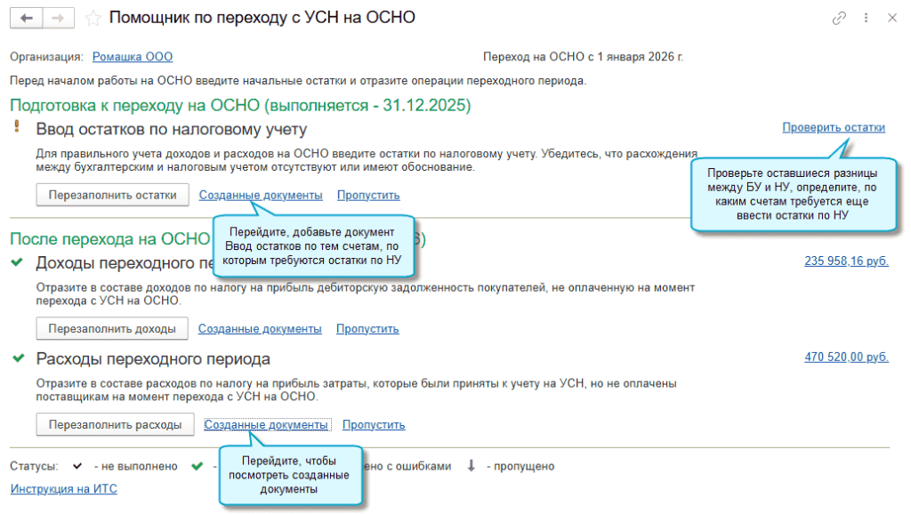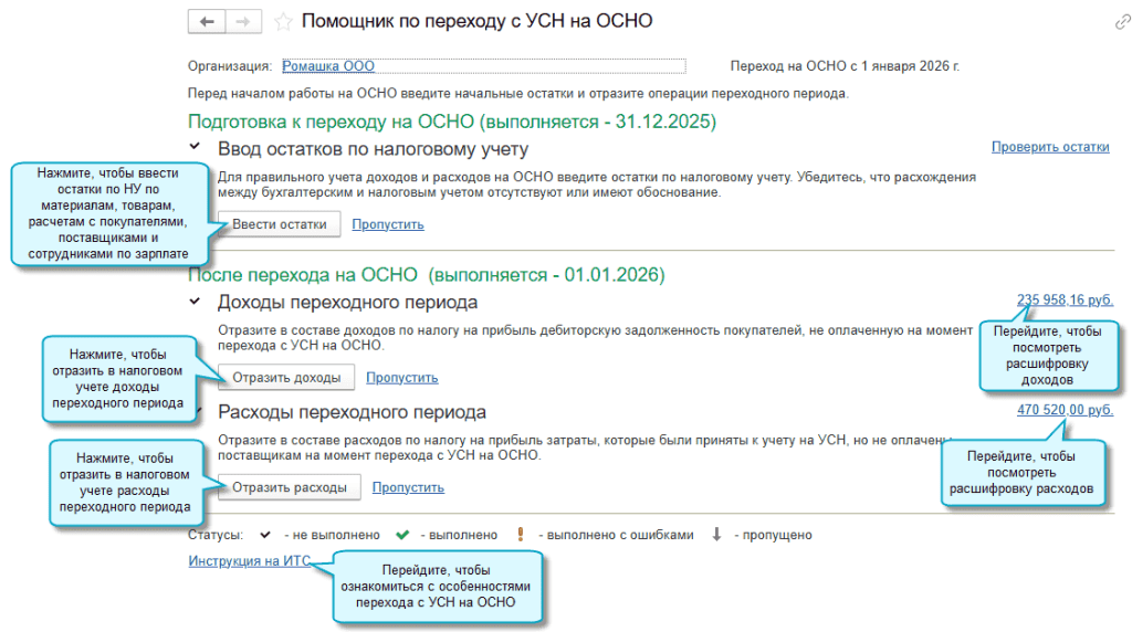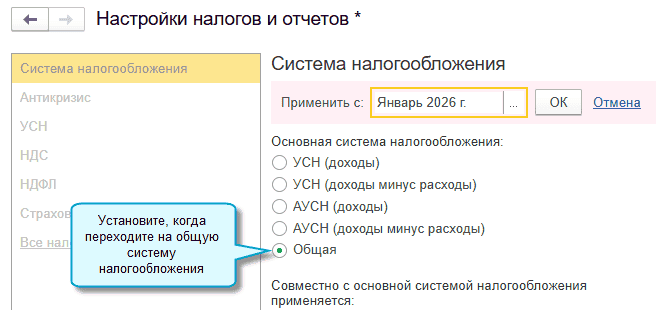 В программе «1С:Бухгалтерия 8» начиная с версии 3.0.189 добавлен помощник для отражения в учете перехода организации с начала года с УСН «доходы минус расходы» на Общую систему налогообложения с уплатой налога на прибыль.