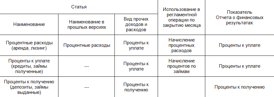 Статья «Процентные расходы», предназначенная для использования в регламентной операции «Начисление процентных расходов», переименовывается при обновлении в «Процентные расходы (аренда, лизинг)», даже если пользователь ранее изменил ее наименование.