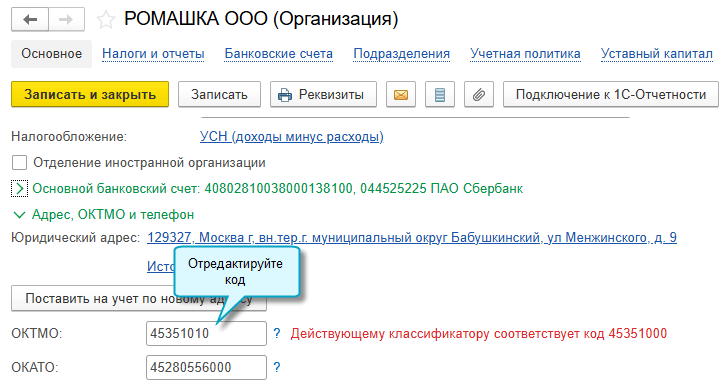 В программе «1С:Бухгалтерия 8» начиная с версии 3.0.190 теперь не нужно самостоятельно отслеживать изменения ОКТМО. Добавлена проверка кода по ОКТМО, соответствует ли он адресу организации на текущую дату.