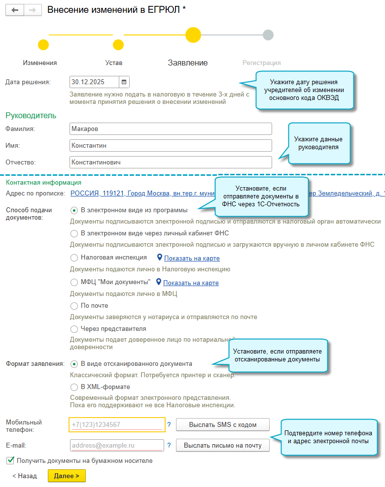 Добавлена возможность подготовить документы, если требуется изменить основной код ОКВЭД в ЕГРЮЛ или ЕГРИП.