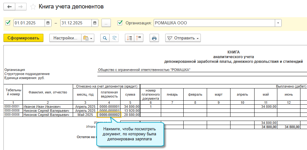 В программе «1С:Бухгалтерия 8» начиная с версии 3.0.176 добавлена расшифровка записей в книге учета депонентов.