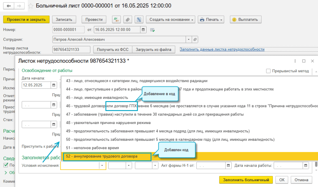 В программе «1С:Бухгалтерия 8» начиная с версии 3.0.176 поддержана версия СЭДО 2.43 от 12.12.2024. Кроме того, изменился список условий исчисления в больничном листе и ответе на запрос СФР.