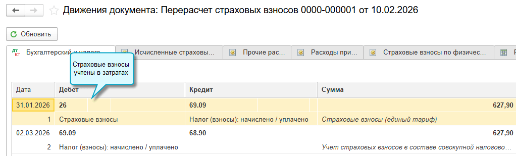 Полный интерфейс: меню «Зарплата и кадры – Страховые взносы – Перерасчеты страховых взносов».